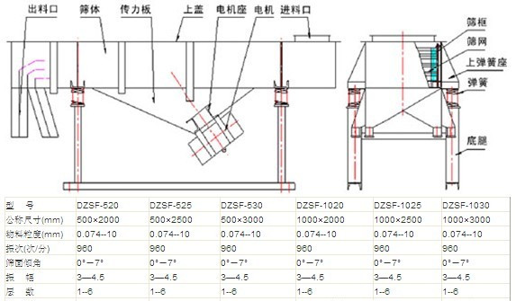 當(dāng)縱向安裝在篩體上的兩臺振動電機(jī)兩端的偏心塊便產(chǎn)生額定激振力,其產(chǎn)生在橫向的激振力相互抵銷,其縱向的激振力通過傳振體傳遞到整個篩面上,從而使篩面上的物料受其激振力而在篩網(wǎng)面上向出料口方向跳躍運(yùn)動。小于篩孔的物料通過篩孔落到下層,大于篩孔的物料經(jīng)連續(xù)跳躍后,經(jīng)出料口流出,由于篩分過程合理,可將物料經(jīng)振動篩分級后,取得幾種不同顆粒的物料,完成物料的分級。